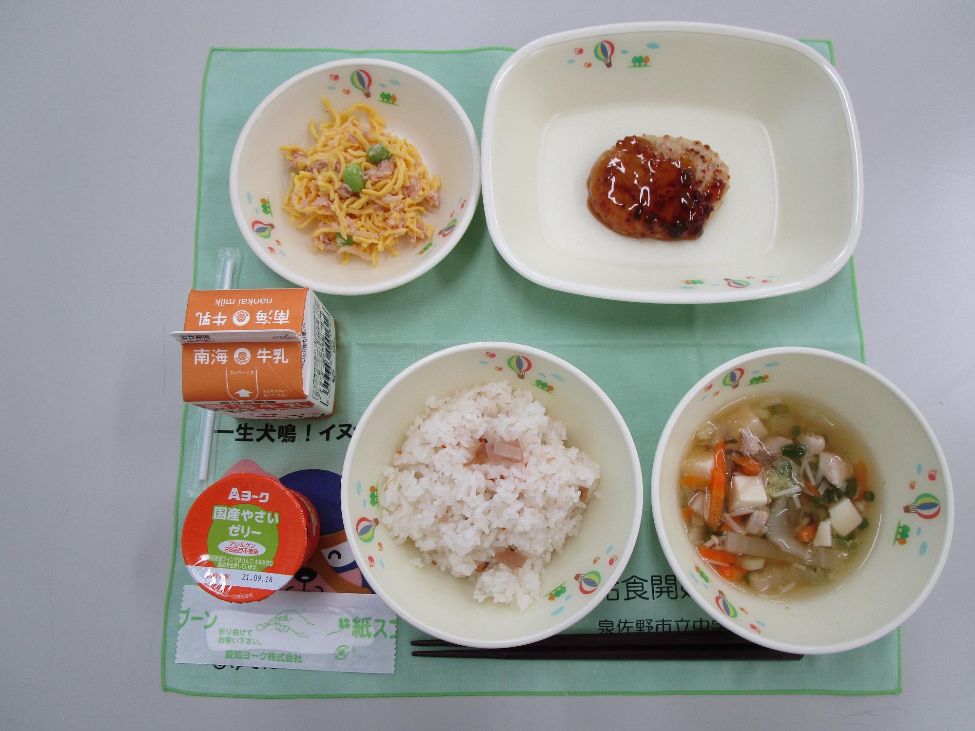 9月2日 牛乳 卵とツナのちらし寿司 豆腐ハンバーグ すまし汁 野菜 - 9gatu 背 景