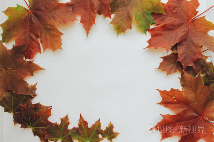 秋天枫叶框架。秋季背景概念。边界, 复制空间, 季节性设计, 感恩节, 9 - 9月 季節 背景